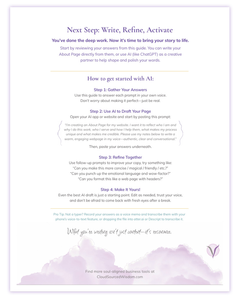When you’re ready to translate your essence into words that move people—start here.